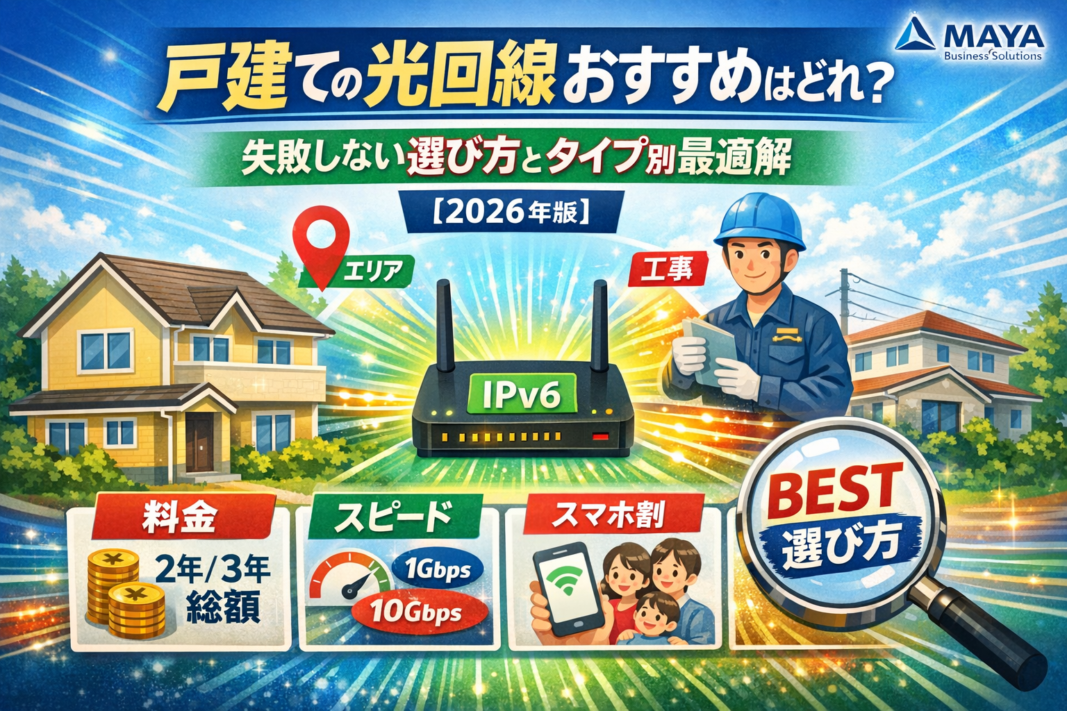 インターネット回線・WiFi戸建ての光回線おすすめはどれ?失敗しない選び方とタイプ別最適解【2026年版】 戸建ての光回線おすすめは「回線名」ではなく、提供エリア・工事条件・IPv6・スマホ割・総額で決まります。失敗しない判断軸とタイプ別の最適解を解説。 2026.02.09 2026.02.10インターネット回線・WiFi光回線の基礎知識