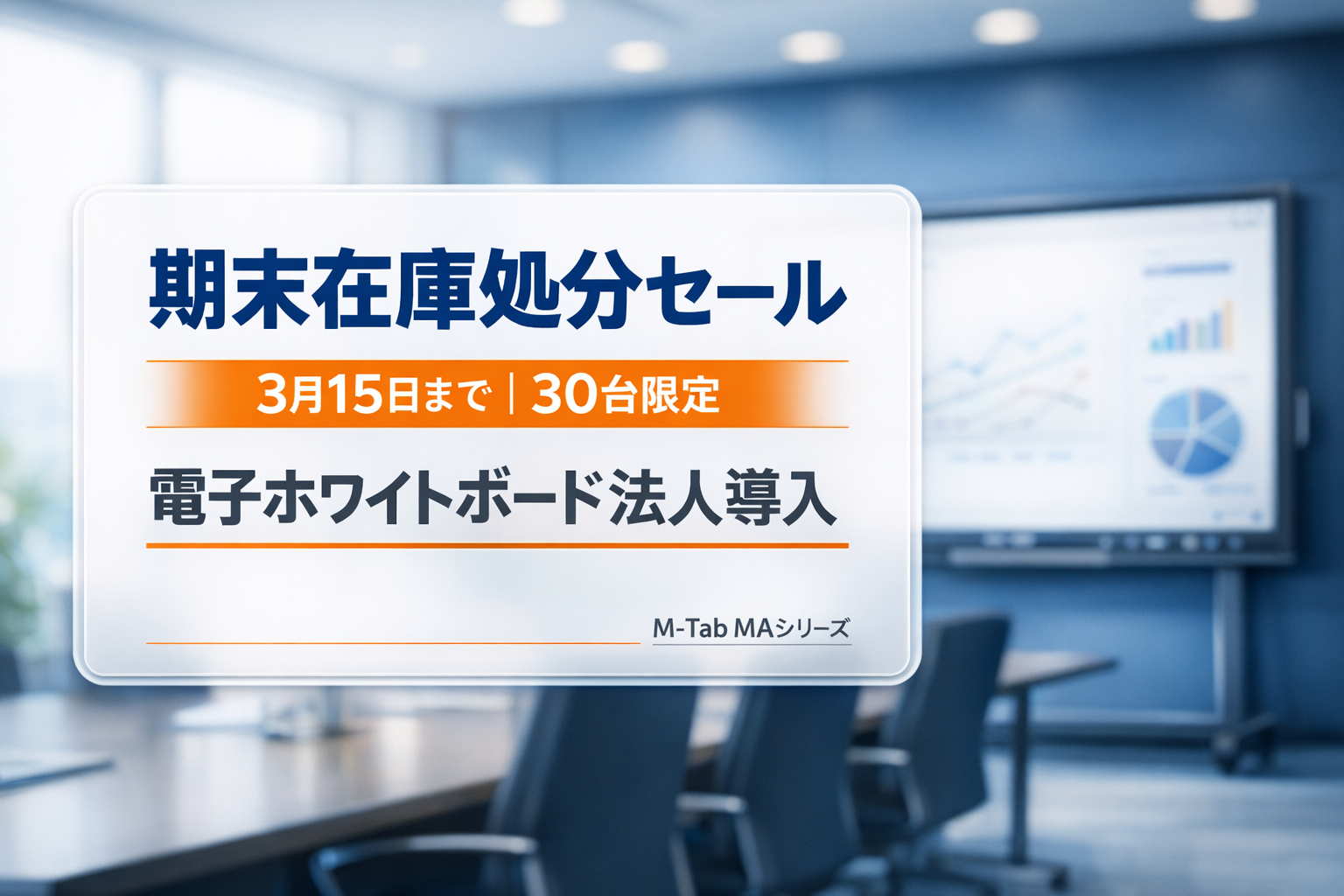M-Tab【2026年版】電子ホワイトボード法人導入の価格比較|M-Tab期末在庫処分セール(3月15日まで・30台限定) 3月15日まで・30台限定。M-Tab電子ホワイトボードを法人向けに特別条件で導入。価格相場・比較ポイント・機能(QR共有/クラウド不要)を解説。 2026.02.18M-Tab法人向けIT導入