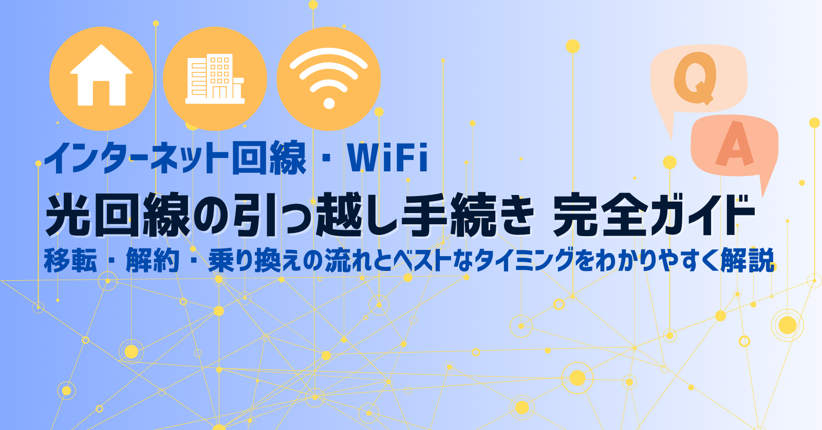 インターネット回線・WiFi光回線の引っ越し手続き完全ガイド|移転・解約・乗り換えの流れとベストなタイミング 光回線の引っ越し手続きを分かりやすく解説。移転・解約・乗り換えの選び方、工事日の決め方、必要な準備、費用を抑えるコツを初心者向けにまとめた完全ガイドです。 2025.12.09インターネット回線・WiFi光回線 × 引越し光回線の契約・解約ガイド