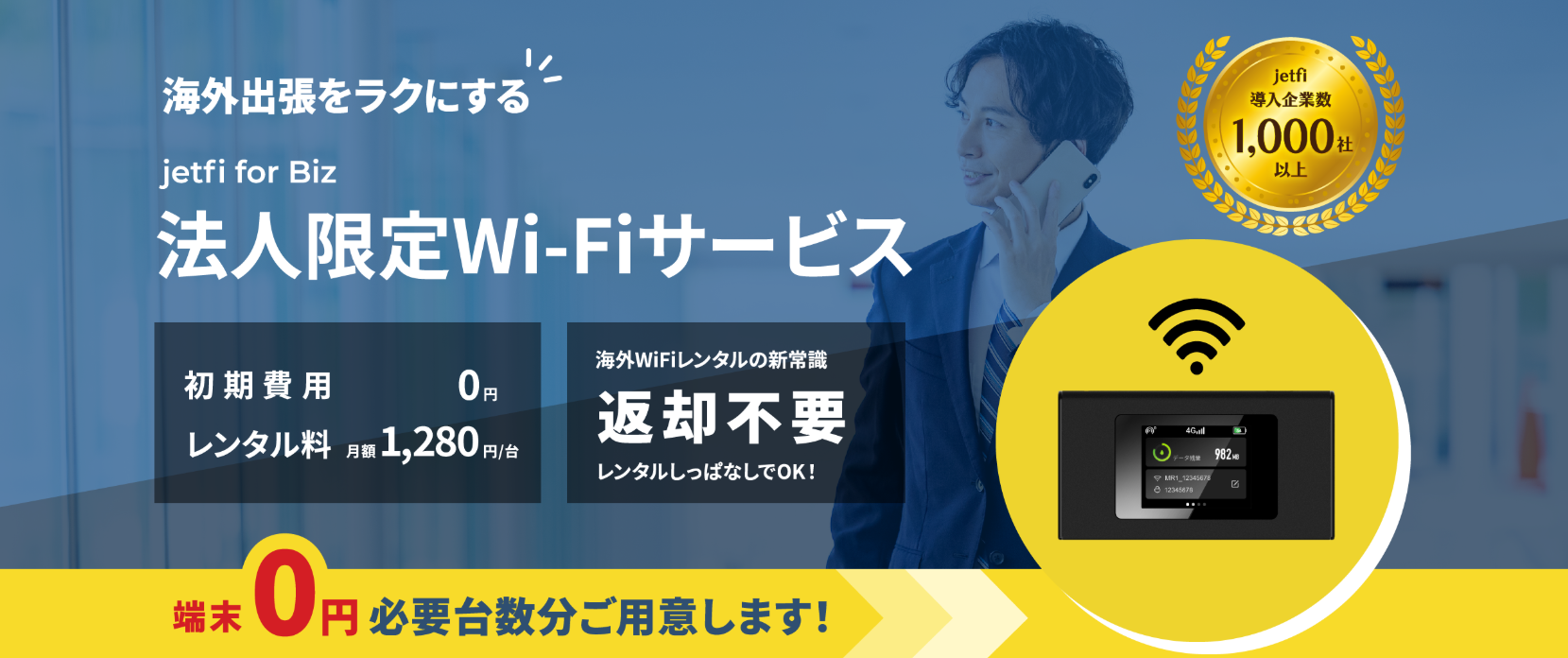 jetfi for Biz【2026年版】法人向けポケットWiFi・モバイルWiFi徹底比較|返却不要のクラウドSIM「jetfi for Biz」が選ばれる理由 法人向けポケットWiFi・モバイルWiFiを徹底比較。返却不要・マルチキャリア・150カ国対応の「jetfi for Biz」が選ばれる理由を解説。用途別の最適解、他社比較、料金体系もわかりやすく紹介します。 2025.12.11 2026.01.05jetfi for Bizインターネット回線・WiFiモバイル通信(WiFi/通信)法人向けインターネット